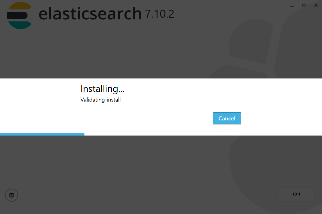 링크를 클릭하면 설치파일 elasticsearch-7.10.2.msi가 다운로드 됩니다. 다운로드 받은 파일을 실행하면 아래와 같은 화면이 나타납니다. 이 화면은 엘라스틱서치가 설치되었을 때 나타나는 화면으로 만약 처음이용자일 경우에는 아래와 같은 화면이 나타나지 않습니다.