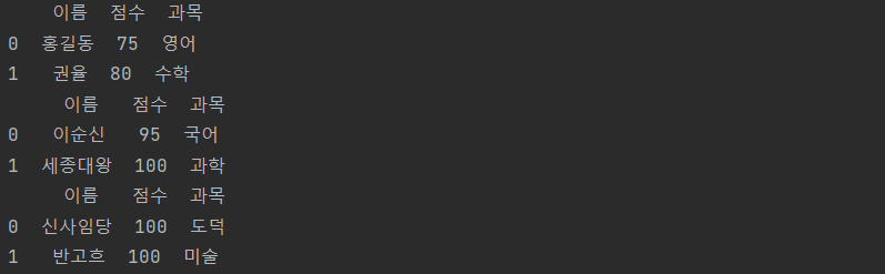 # 데이터프레임 결과출력