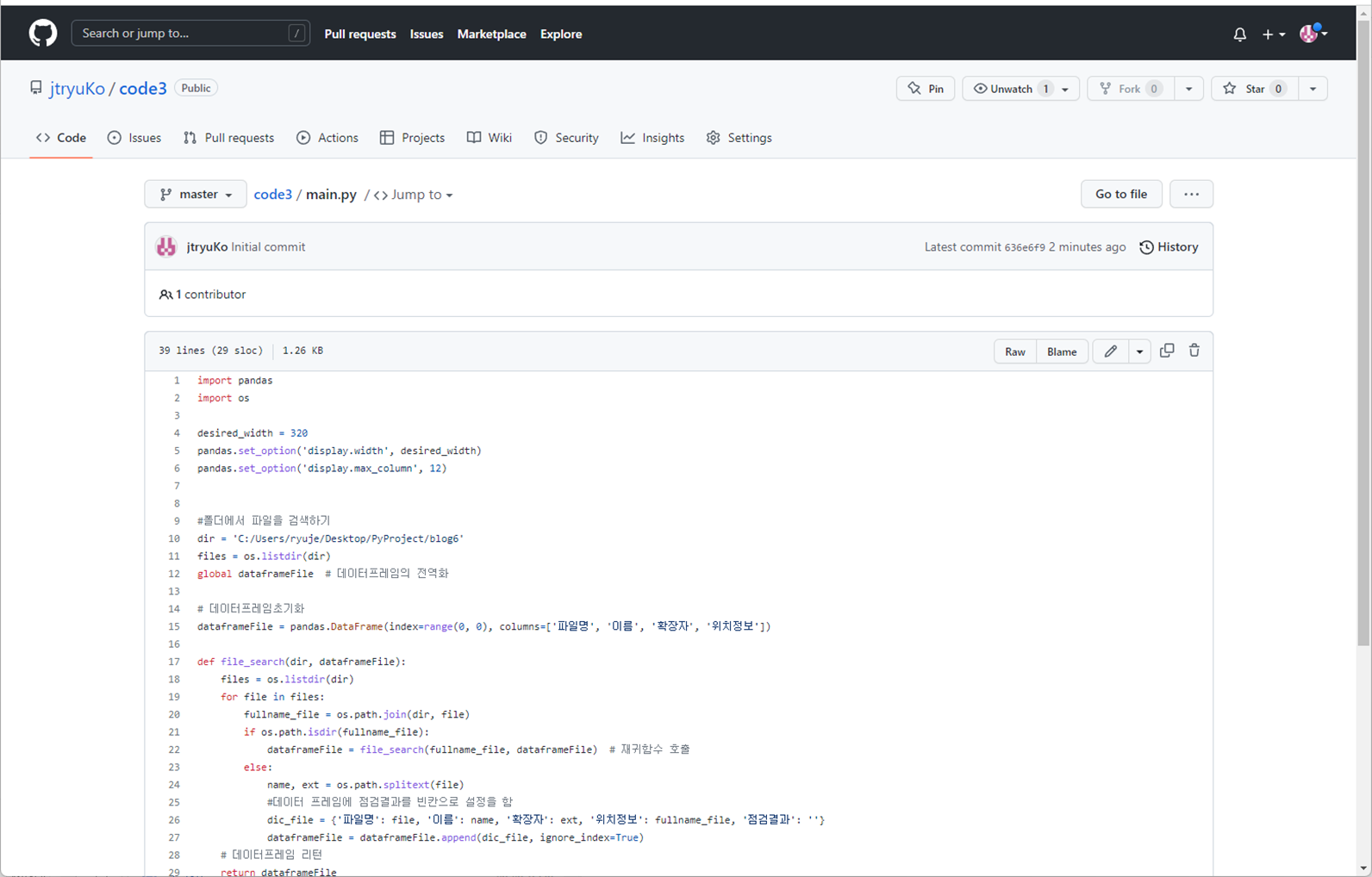 공유가 완료되었으며 Github에 아래와 같이 코드가 잘 업로드 된 것을 확인할 수 있습니다.