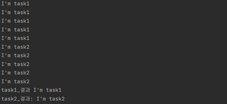 자 그럼 여기서 task1, task2를 함수처럼 파라미터와 리턴값을 이용하려면 어떻게 해야 할 까요? 아래와 같이 작성하면 우리가 원하는 결과 나타날까요?
