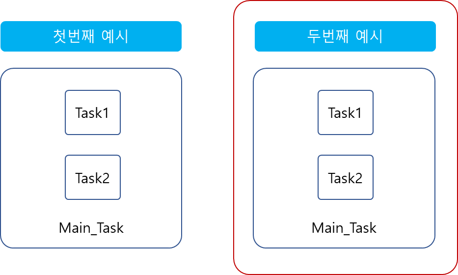 우선 2의 Task를 만들도록 하겠습니다. 이 구조는 손쉽게 이해가 되시죠?, 첫번 째 예시를 참고하시면 크게 어렵지 않게 이해가 되실 겁니다.