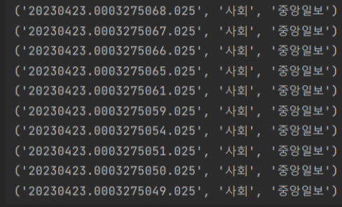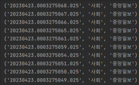 cursorDB = conn.execute(Query_String, ("중앙일보", "사회"))